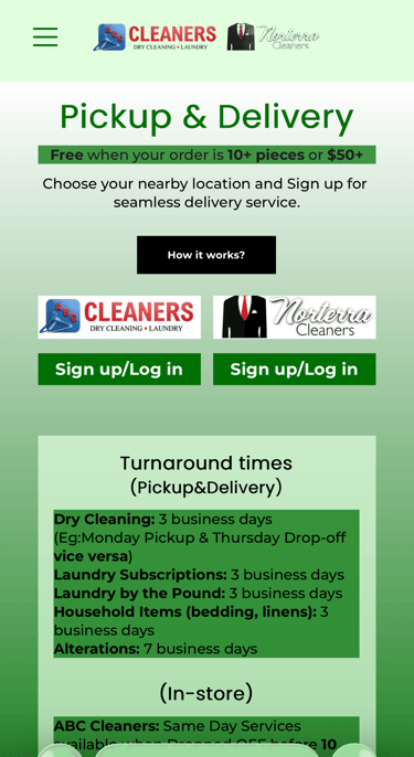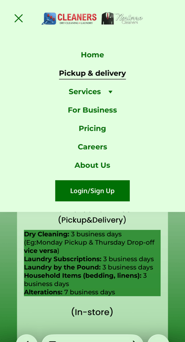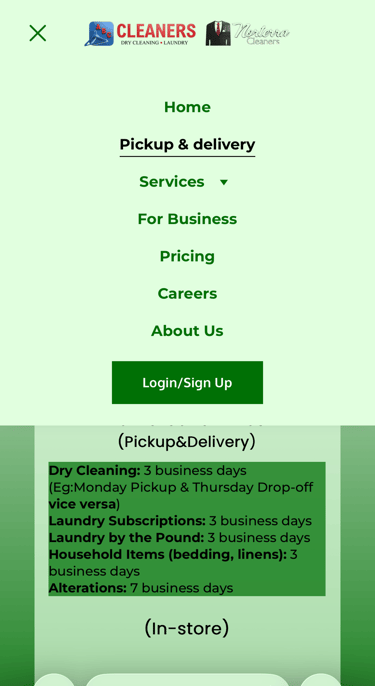 Dry Cleaning: 3 business days (Eg:Monday Pickup & Thursday Drop-off vice versa)